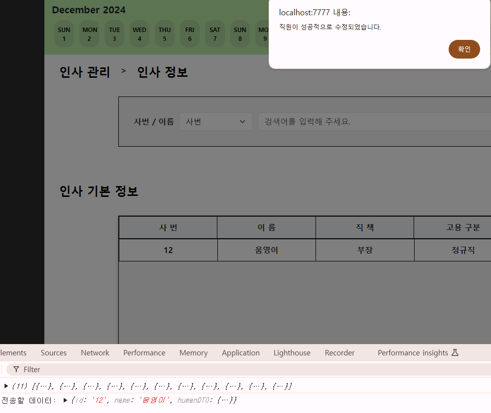프로젝트 중 인사쪽 개발을 맡아, 인사 조회 기능 작업중이었다.