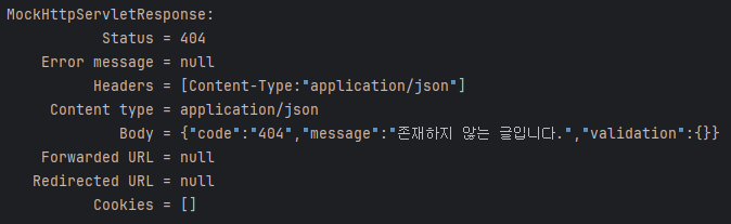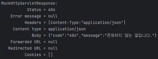 존재하지 않는 게시글 조회 시, 예외 처리 테스트를 진행했다.
