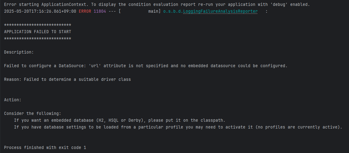 개인 프로젝트를 하나 만들기 위해 의존성만 주입하고 실행해보니 아래와 같은 에러 발생.