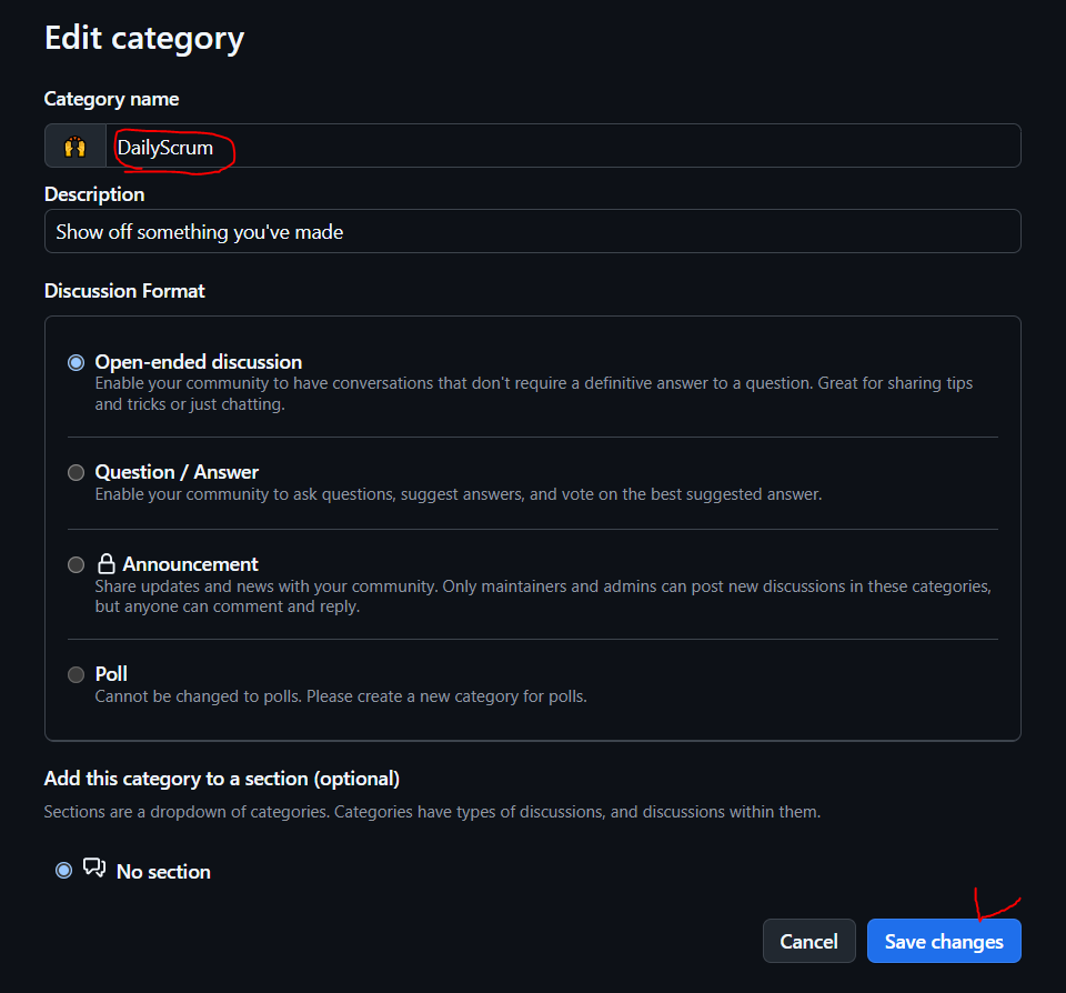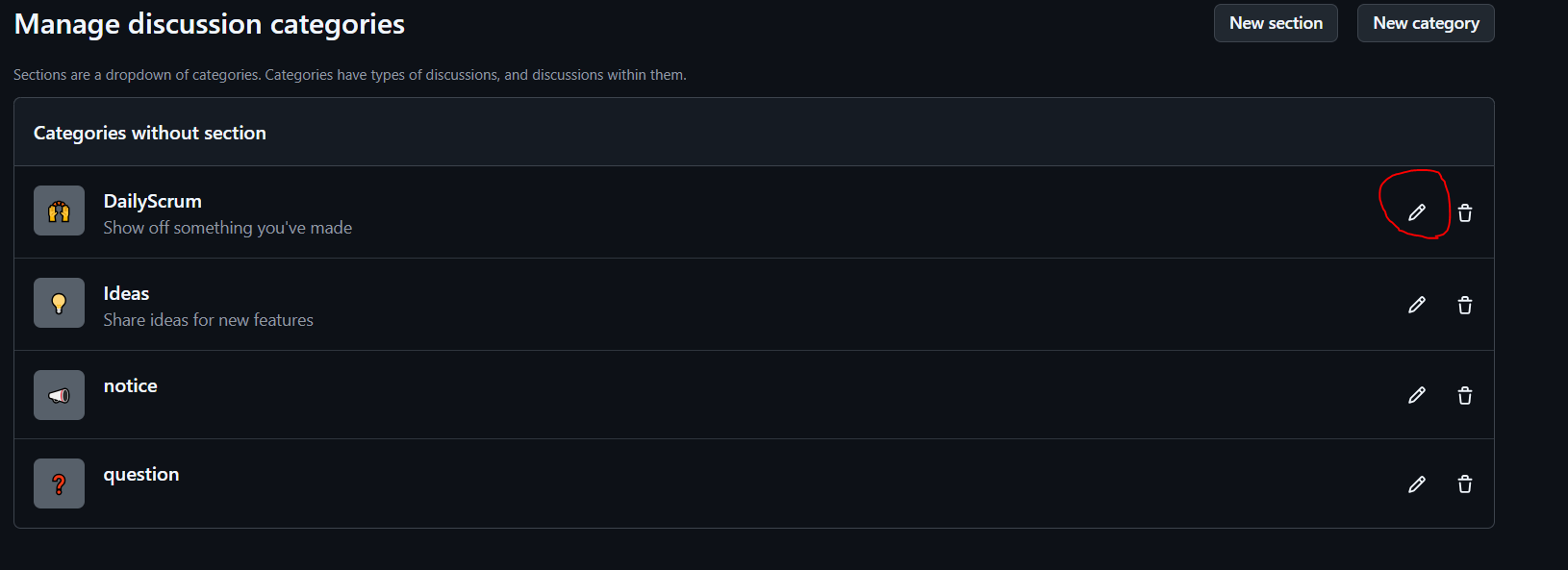 ① Discussions → 연필 모양 클릭하여 편집하기
