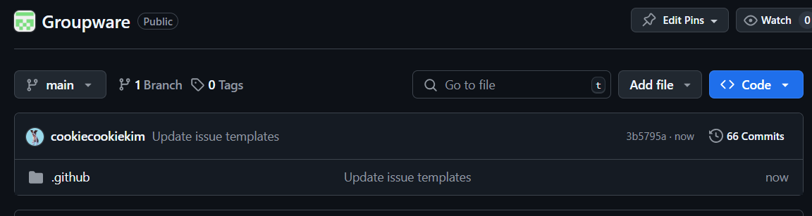 파일 만들 때 해당 레파지토리에 Pull requests나 Discussions 템플릿을 추가 작성해야 할 수도 있으니,