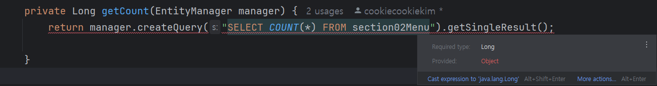 두번째 전달인자에 반환하는 타입에 맞게 작성하지 않는다면(예 : Long) 모두 Object 타입으로 인식한다는 것이다.