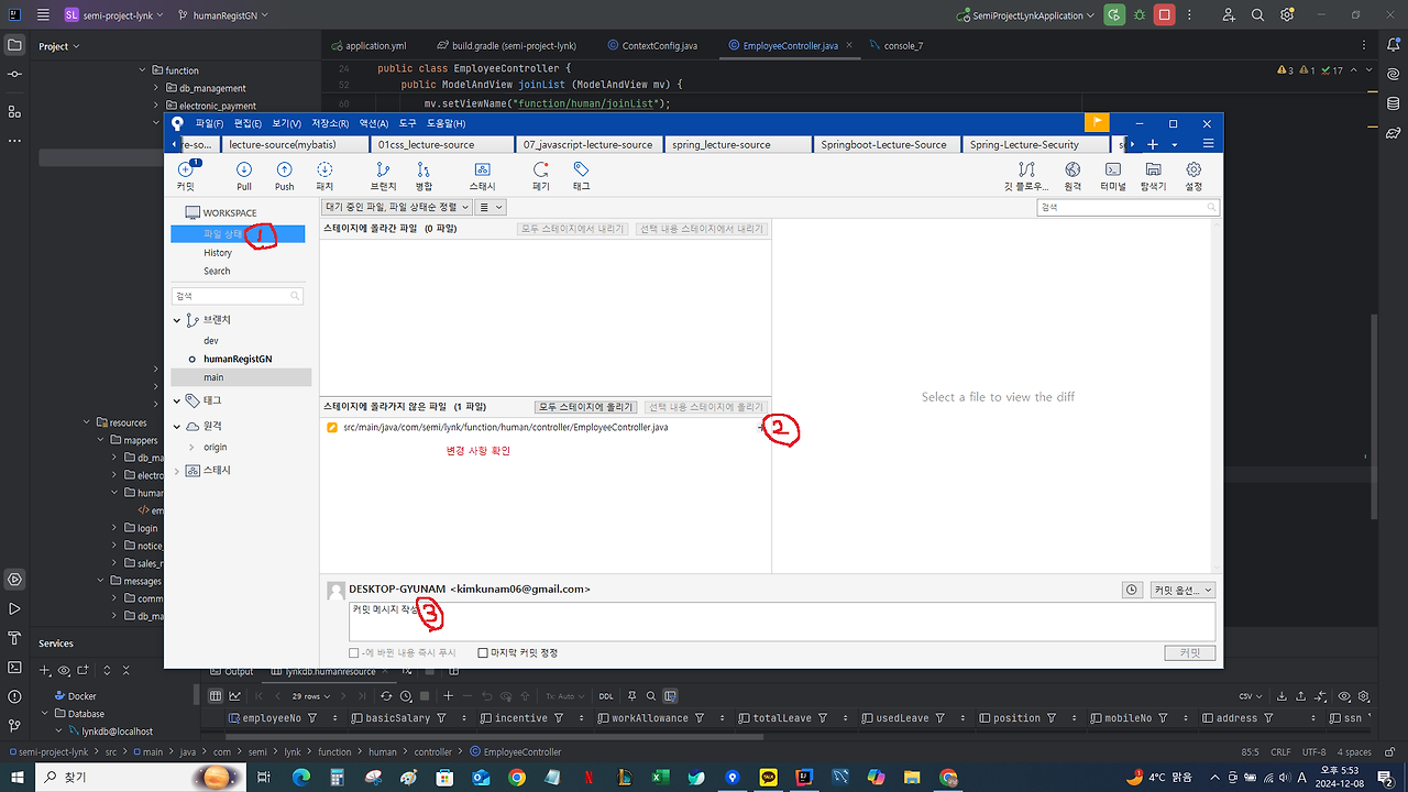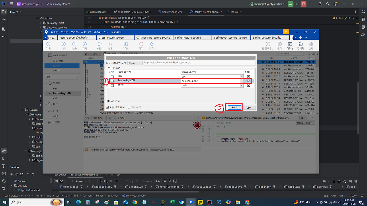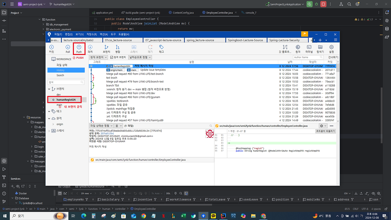 프로젝트 진행 시 업무 단위별로 브랜치 생성 방법 / merge / pull / push 방법 등,