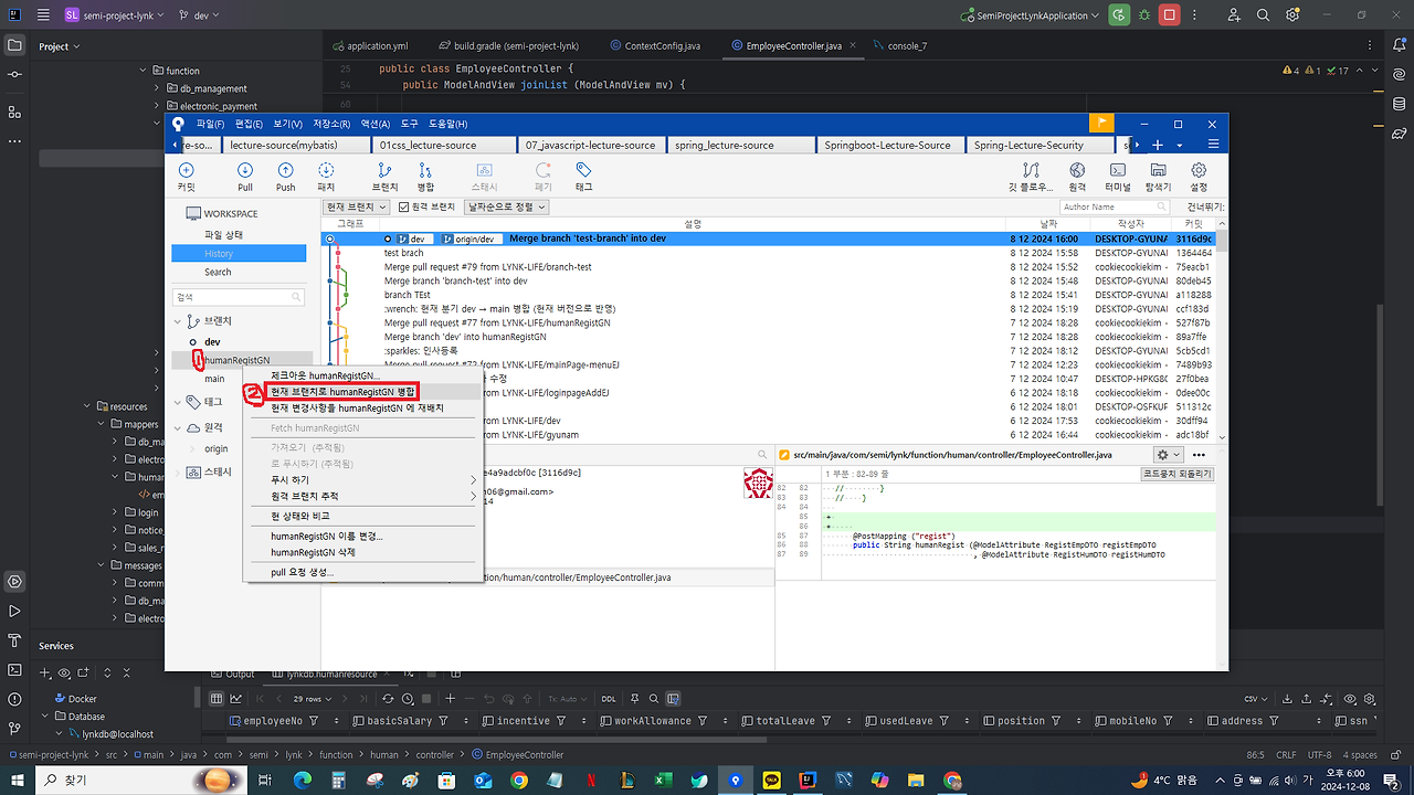 : sourceTree 내에서 merge
