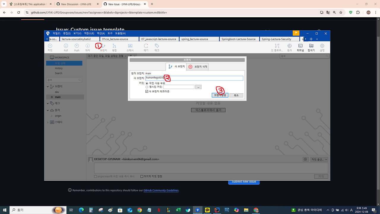 - 해당 브랜치로 작업 진행