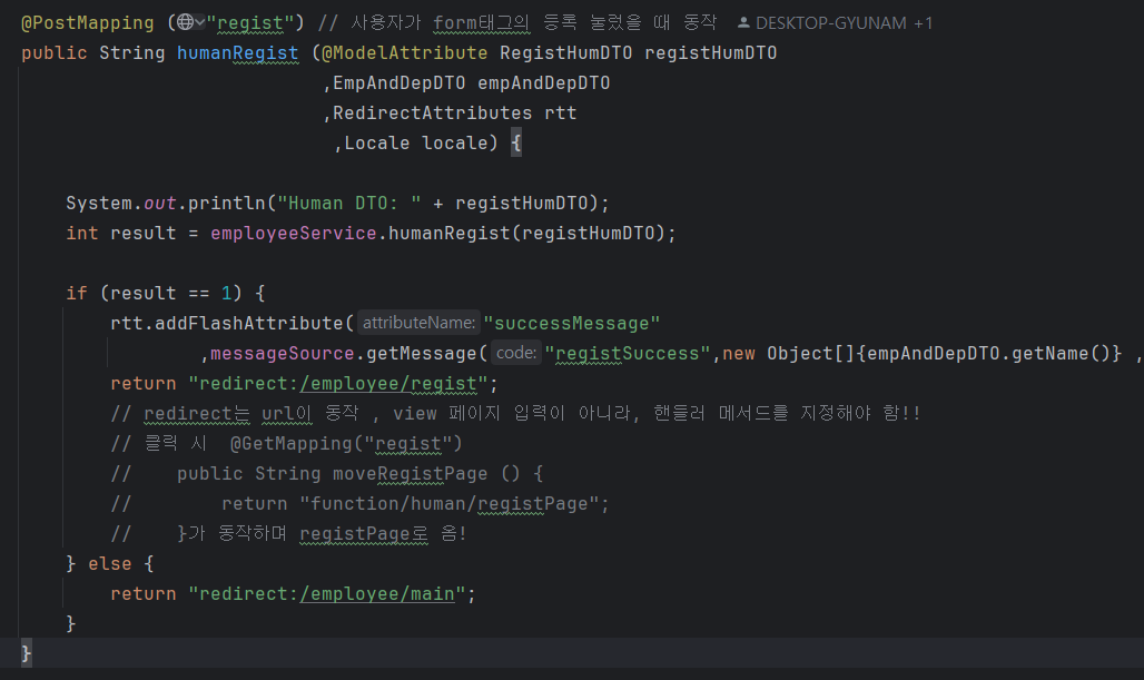 프로젝트 진행 중 잘 되던 인사 등록에 문제가 생겼다.