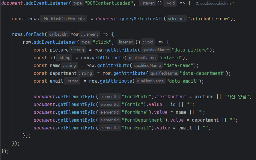 해당 열의 getAttribute로 꺼내주고 변수에 담고, id 요소 추출한 값에 다시 담기!!