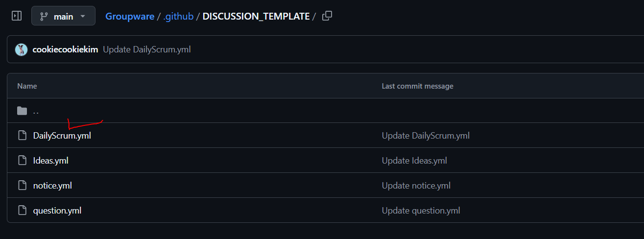 ③ .github → DISCUSSION_TEMPLATE 디렉터리를 거쳐, 작성할 템플릿 파일 클릭