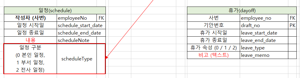 휴가 신청은 dayOff 테이블 , schedule 테이블이 사용 되었는데 이것이 miss!!